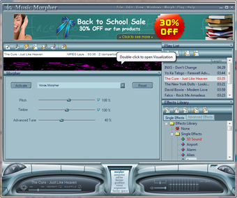 Luister je graag op een alternatieve wijze naar je muziek dan is AV Music Morpher het instrument bij uitstek. De software biedt een scala aan effecten die je over je favoriete nummers smeert. Muziek klinkt dan ofwel ontzettend raar (bijvoorbeeld met het 'alien-effect') of passend bij een bepaalde omgeving. Zo kies je uit een uitgebreide lijst van instellingen om het geluid aan te passen, waaronder het populaire badkamer-effect. Ook een kerk of een concerthal behoren tot de mogelijkheden.